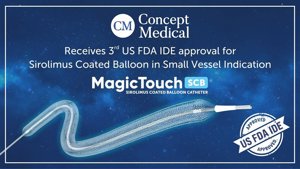 El 25 de abril de 2023, la FDA estadounidense concedió la tercera aprobación IDE para el balón recubierto de sirolimus MagicTouch SCB de Concept Medical. Junto con esta última aprobación IDE para el tratamiento de la indicación de vasos pequeños, Concept Medical recibió otras dos aprobaciones IDE para la familia de productos MagicTouch SCB para el tratamiento de la indicación de restenosis coronaria en endoprótesis (ISR) y la indicación por debajo de la rodilla (ATP).