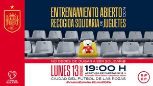 De este modo, “todas” las personas que vayan a acercarse a Las Rozas este lunes para ver el entrenamiento del combinado nacional podrán traer un juguete, nuevo o usado en buen estado, que la RFEF hará llegar a diferentes ONGs que trabajan con menores y familias en situación de vulnerabilidad. “A través de esta acción, estos niños podrán disfrutar de unas Navidades en las que no falten los regalos”, resaltó la entidad.