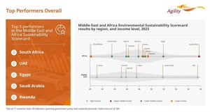 No hay una talla única. Los distintos países tienen diferentes prioridades de sostenibilidad en función de su renta, su fortaleza económica, su dependencia energética y otros factores. Los países del Golfo con altos ingresos y productores de energía suelen invertir más en infraestructuras y ecosistemas sostenibles. Las economías africanas obtienen mejores resultados en conservación y consumo de energía.