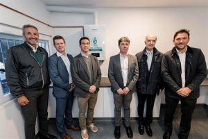 Esta caldera es un prototipo cedido por Vaillant, homologado en España, y preparado para la utilización 100% H2. Con una potencia de 25 kilovatios (kW) es equivalente en forma y tamaño a una caldera actual de gas natural.