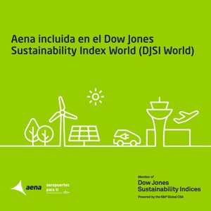 Aena ha sido incluida por primera vez en el Dow Jones Sustainability World Index, un índice con el que la compañía Standard & Poor’s (S&P) Global evalúa el desempeño de las mayores empresas del mundo en términos de sostenibilidad.
