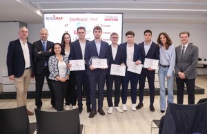 Barcelona, 14 de marzo de 2024.- Un equipo formado por cinco estudiantes de la Universitat Internacional de Catalunya (UIC Barcelona) ha ganado el Campeonato bugaMAP de Fundación MAPFRE en una final celebrada en Barcelona. Los alumnos Josep Colominas, Francisco Puga, Joan Gaudó, Jordi Raventós y Oriol Lucena han tenido que tomar decisiones relacionadas con la suscripción, reaseguro, inversiones y gastos para lograr que su empresa sea la que mayor valor genera, de los cuatro grupos finalistas.