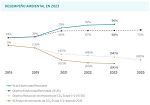 Las 44.985 toneladas registradas suponen un 15% menos de emisiones que las 52.887 toneladas emitidas en 2022. BBVA ha logrado reducir un 84% esas emisiones el pasado año respecto a 2015, muy por encima del objetivo del 68% marcado para 2025.
