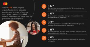 El 63% de las mujeres reconoce no sentirse segura sobre el nivel de conocimientos financieros generales y el 31% dice que la brecha de genéro frena su empoderamiento financiero en comparación con el 21 por ciento de los hombres. Así lo revela la segunda edición del informe “Mujer y Finanzas” de Mastercard, que analiza la situación de las mujeres españolas y europeas en cuanto a sus finanzas.