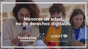 La Fundación Atresmedia y UNICEF España han lanzado la campaña ‘Menores de edad, no de derechos digitales’ para proteger los derechos de la infancia “en cualquier lugar y ante cualquier circunstancia, incluido el mundo digital”, en un contexto de “creciente preocupación” por la “rápida” evolución de las tecnologías e Internet.