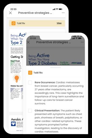 ACTO TalkTRx, integrado con Veeva Vault PromoMats, proporciona acceso al contenido actual y aprobado almacenado en Vault, a la vez que incorpora temas de conversación clave y consejos sobre las mejores prácticas para los representantes que utilizan el activo en las interacciones con los profesionales sanitarios. La integración ya está disponible y ha sido creada y suministrada por ACTO.