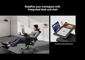 Lo que convierte en una oficina portátil es la pequeña mesa desmontable que se puede acoplar o desacoplar de la silla según sea necesario. La mesa se utiliza para colocar el portátil y materiales relacionados en su superficie, mientras que, cuando no se necesite, se puede retirar del conjunto. Esta mesa la hace más preferible y la elección número uno de los compradores para mejorar la flexibilidad en su espacio de trabajo.