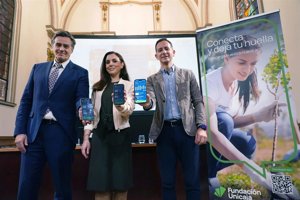 La directora de División de Actividades, Comunicación e Imagen de la Fundación Unicaja, Cristina Rico, el director de Actividades Sociales, Gerardo Lerones, y el responsable de Deportes, Tiempo Libre, Medio Ambiente y Voluntariado de la institución, Manuel Dorado, han presentado este miércoles esta nueva aplicación con la que se persigue dar un impulso más al voluntariado dentro de las líneas estratégicas de la institución.