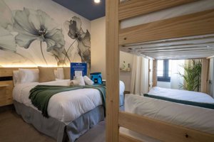Además, el hotel cuenta con un servicio de balneario urbano, solárium, hamacas, duchas refrescantes y bebida saludable incluida, diseñado para ofrecer un descanso profundo y consciente en un entorno idílico rodeado de vegetación y rincones tranquilos que invitan a la calma. Puede disfrutarse en solitario, en pareja, con amistades o incluso como plan de desconexión para equipos de trabajo.