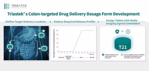 El T21 es un novedoso tratamiento potencial capaz de administrar fármacos dirigidos al colon. Con un diseño único de forma de dosificación 3D, el T21 puede llegar al segmento del colon del tracto gastrointestinal al que va dirigido, lo que permite utilizar una dosis de fármaco inferior a la del fármaco de referencia, que proporciona una exposición sistémica. Gracias a la impresión 3D, se emplearon agentes de radioimagen incrustados en componentes específicos de la forma farmacéutica en el desarrollo inicial de la formulación para evaluar y confirmar la localización de la liberación del fármaco en el tracto gastrointestinal. Este novedoso proceso puede utilizarse en el desarrollo de futuros fármacos dirigidos a segmentos específicos del tracto gastrointestinal para aumentar la eficacia y la tasa de éxito del desarrollo de productos. La plataforma tecnológica de comprimidos orales de liberación retardada y dirigida al colon no sólo puede utilizarse para desarrollar fármacos de moléculas pequeñas, sino también para fármacos peptídicos.