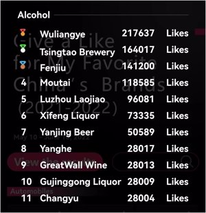 Durante el período de votación en línea de un mes, los votos de los consumidores extranjeros para sus marcas chinas favoritas se recopilaron en plataformas como el canal en inglés de Xinhuanet, la matriz de redes sociales en el extranjero de CEIS, Google, dpa, InfoQuest, etc. Wuliangye obtuvo la mayor cantidad de Me gusta entre las marcas de licores.